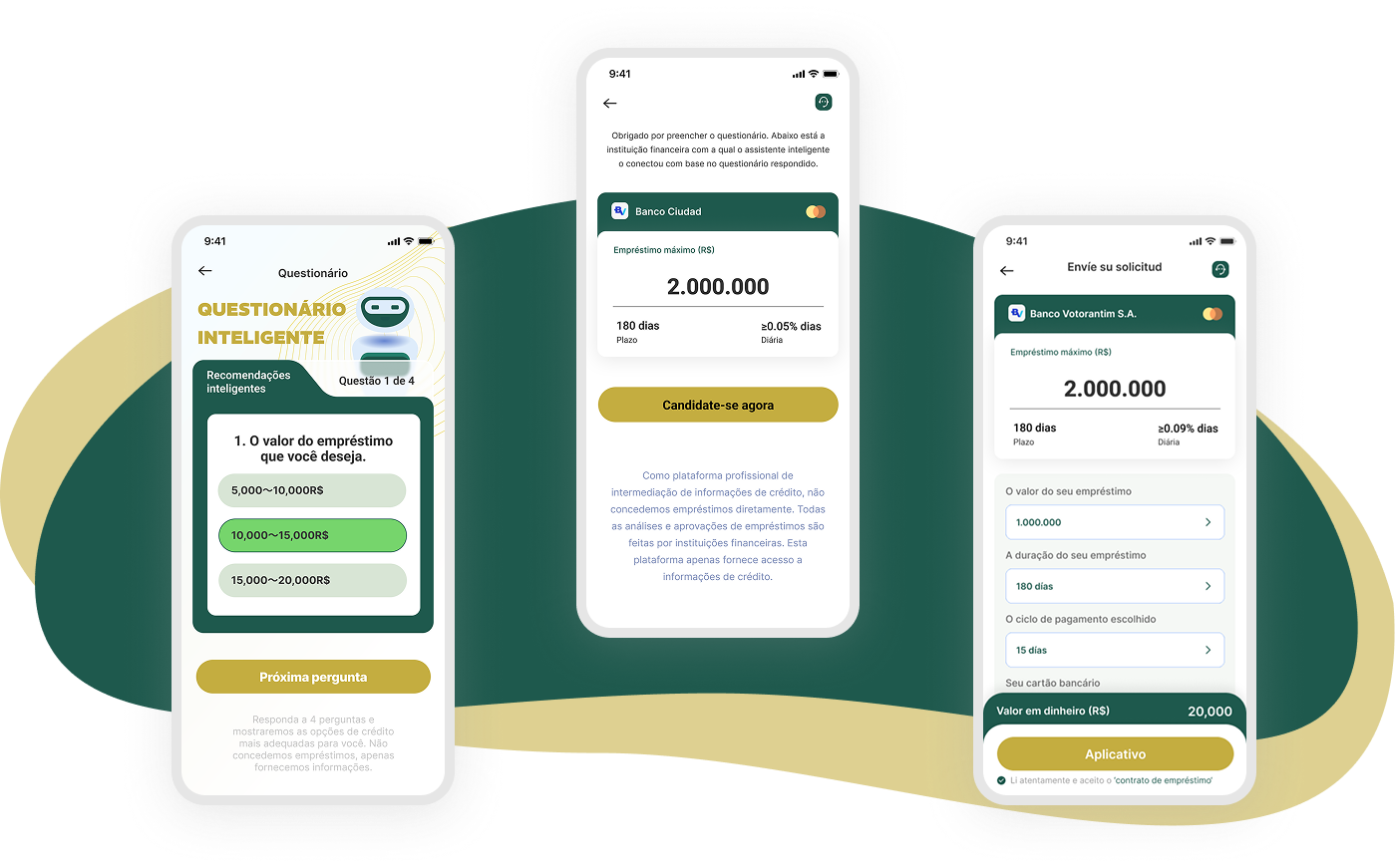 Complete um breve questionário e descubra em minutos as opções de empréstimo mais adequadas para você.
